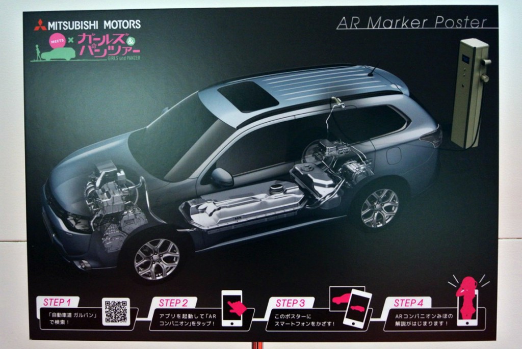 東京モーターショー2013でのiPhone、iPad活用ソリューションとしてひときわ目を引いたのが、三菱自動車ブースのARを活用したガルパンコラボアプリ「自動車道」